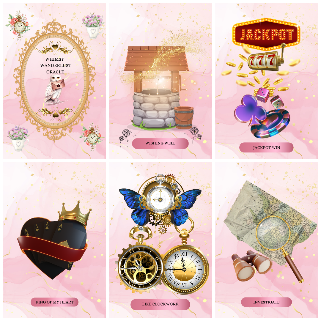 The Whimsy Wanderlust Oracle presents a collection of playful and meaningful symbols and messages that can easily be incorporated into any reading.